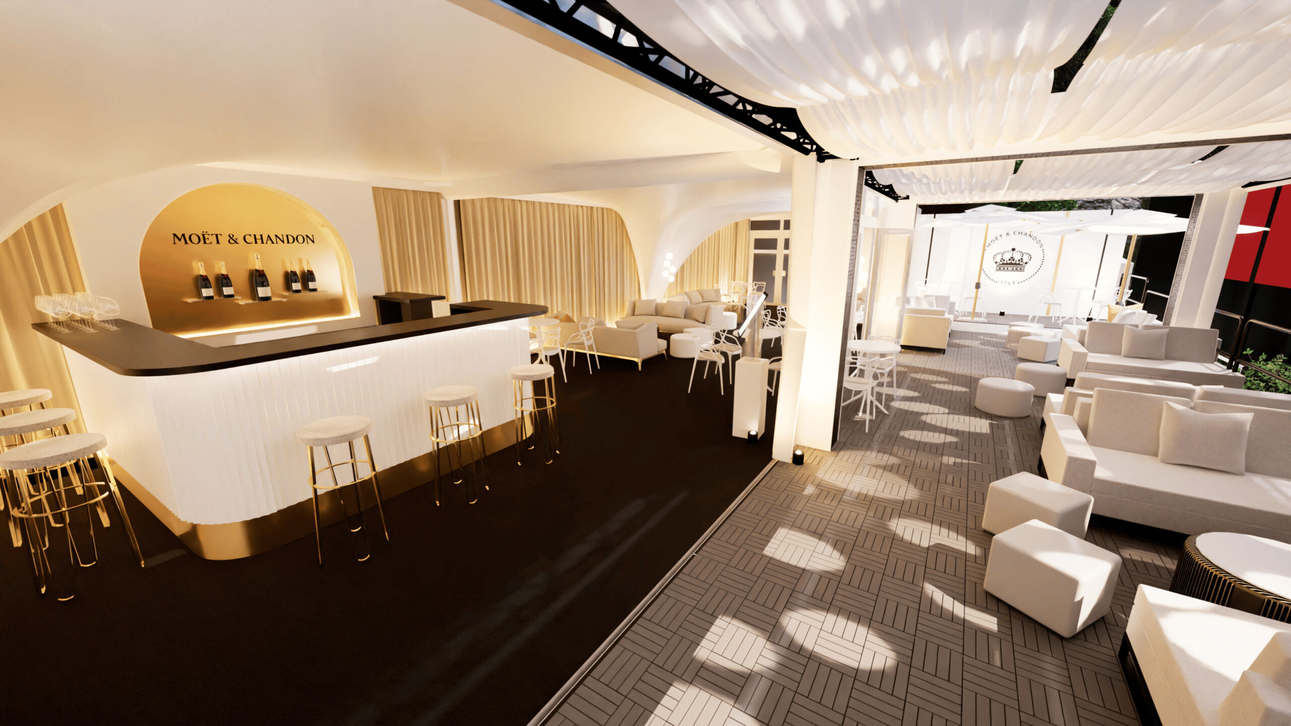 We’ve kicked off the summer season! For the fourth year, we have prepared the Moët Chandon zone at the Karlovy Vary Film Festival, and once again, it was anything but boring. Even though we built the zone on the Thermal terrace for the third time, it didn’t make it any easier. Each year, we work on improvements compared to the previous year, not only in terms of design and interior but also by enhancing the functionality of the space and the comfort for visitors. However, some elements remain constant, so you can still enjoy the wide entrance staircase, the new look of the photo wall, and the upgraded central bar. You can visit the zone throughout the entire festival.